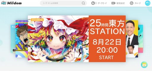 8月22~23日放送、配信プラットフォームは「mildom」に決定!「25時間東方ステーション ~ 東の国の眠らないテレビ」放送内容を大公開!