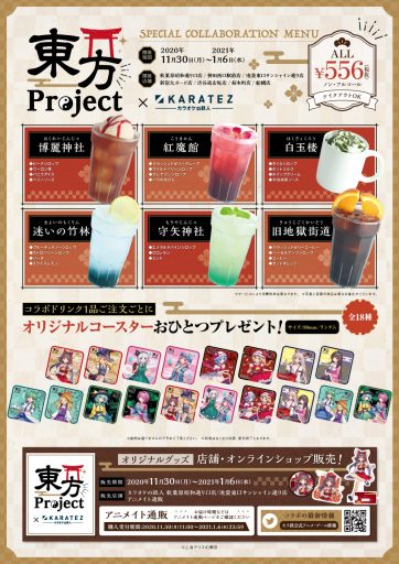 コラボ特設サイト:https://www.karatetsu.com/animegame/toho-project.shtmlコラボドリンクの販売