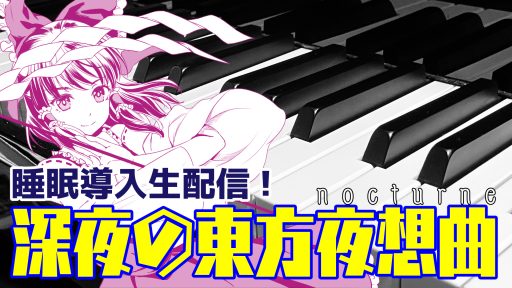 放送内容:夜は寝よう!という事なので、皆さんが健やかな眠りにつけるように、黙々と静かな東方ピアノアレンジをBGMに演奏させて頂きます。書き下ろしアレンジ多数あります。