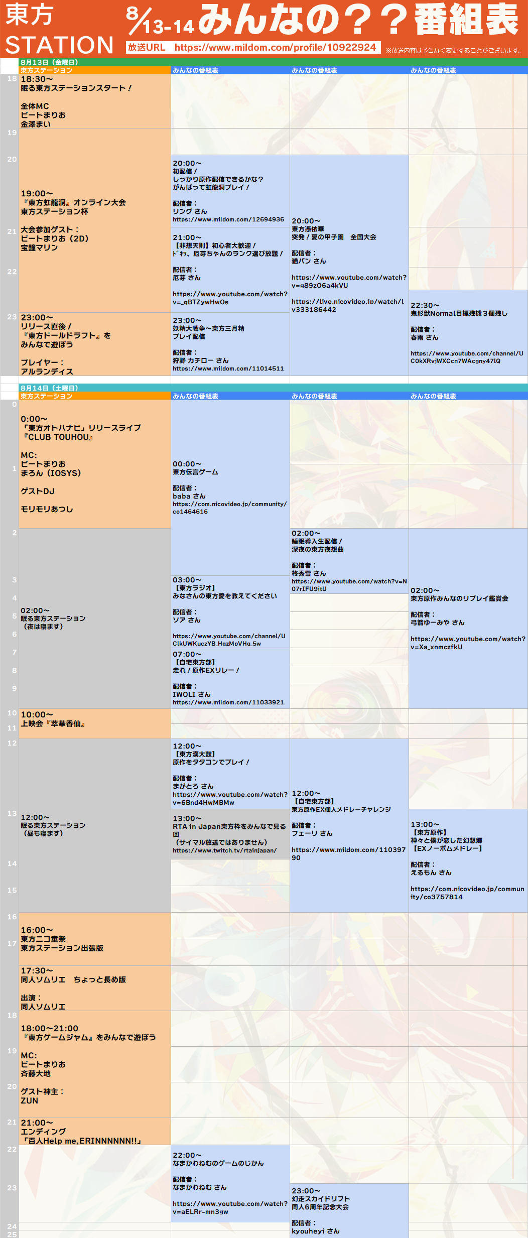 当日の出演者や「みんなで作る??番組表」放送内容を発表! 8/13-14放送「眠る??時間東方ステーション」!