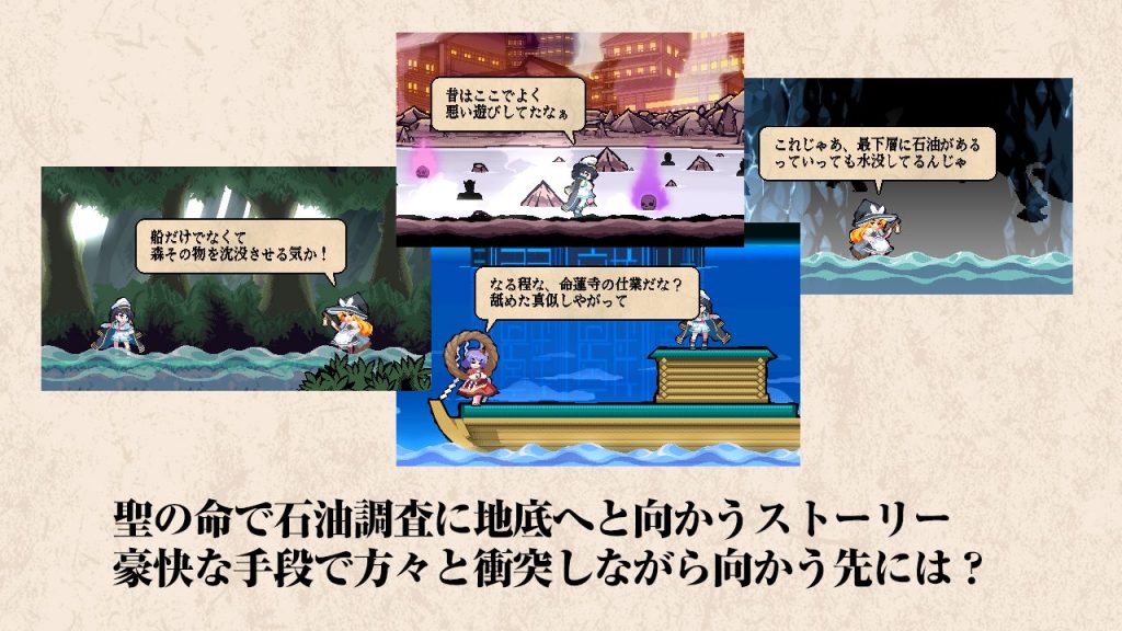 村紗のストーリーは、命蓮寺の尼僧、聖白蓮の命で村紗が石油調査に向かう、というもの。