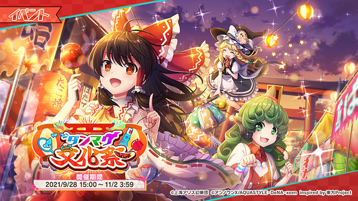 株式会社ディー・エヌ・エー(本社:東京都渋谷区、代表取締役社長兼CEO:岡村信悟/以下、DeNA)が、「東方Project」を盛り上げる集団「アンノウンX」の一員として企画・配信を行っている、スマートフォン向けリズムゲーム『東方ダンマクカグラ』は、2021年10月1日(金)に、イベント「少女と夢見る摩訶不思議の国」を開始しました。