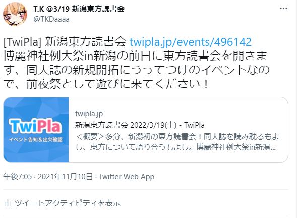 ※TwiPlaへの登録が必須なので参加希望される方は3月18日(金)までに主催Twitterまたは下記のリンクから登録をお願いします。お得な学割、レイマリ割もあるので気になる方はTwiPlaを要チェック!