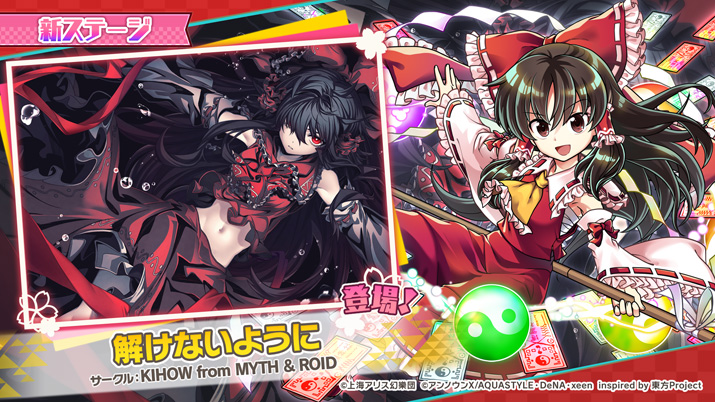 株式会社ディー・エヌ・エー(本社:東京都渋谷区、代表取締役社長兼CEO:岡村信悟/以下、DeNA)が、「東方Project」を盛り上げる集団「アンノウンX」の一員として企画・配信を行っている、スマートフォン向けリズムゲーム『東方ダンマクカグラ』は、本作のハーフアニバーサリーに合わせて、2022年2月4日(金)に原曲「ハルトマンの妖怪少女」と、MYTH & ROIDのボーカルKIHOWが歌うコラボ楽曲「解けないように」がプレイ可能になりました。