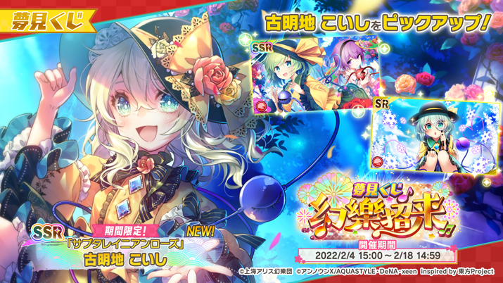 ジャケットイラスト原曲実装にあわせて、夢見くじ「幻樂招来」を開始!「古明地 こいし」のSSRミタマカードが新登場!