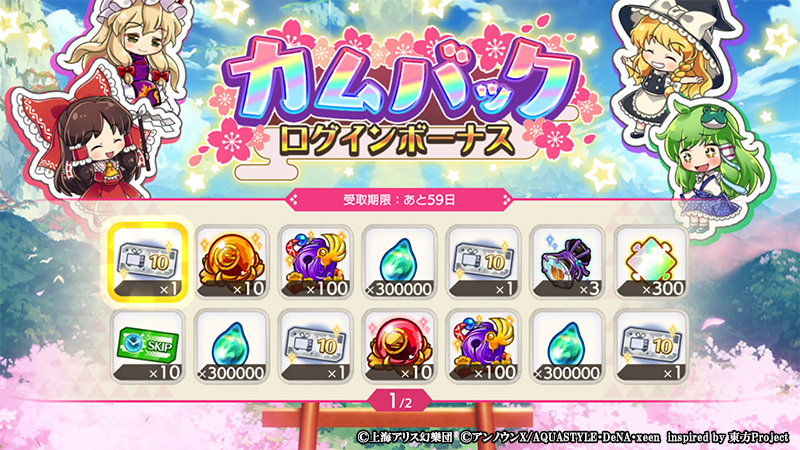 『東方ダンマクカグラ』あきやまうにさん作曲の「砕月」が登場予定!「カムバックログインボーナスキャンペーン」を開催中!
