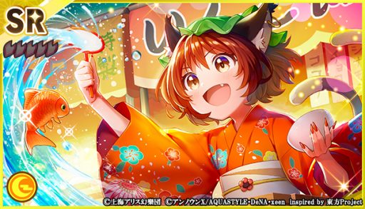 2022年6月30日(木)に、イベント「夏だ!祭だ!我欲のビースト・ストラグル」を開始しました。本イベントには累計イベントポイント報酬とランキング報酬があり、それぞれ特定の条件を達成するとSRミタマカード「[狙った獲物は逃さない!]橙」、SRミタマカード「[貴方と歩くひと夏の思い出]聖 白蓮」を手に入れることができます。