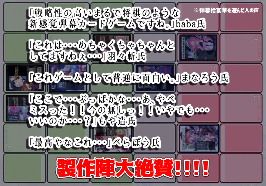 豪華東方イラストレーター陣がおくる新感覚弾幕カードゲームバトル『弾幕拾宴華』がリリース!博麗神社遊芸祭にて先行頒布、大会開催も