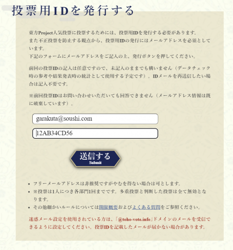 - 前回の投票用ID(こちらは任意です)