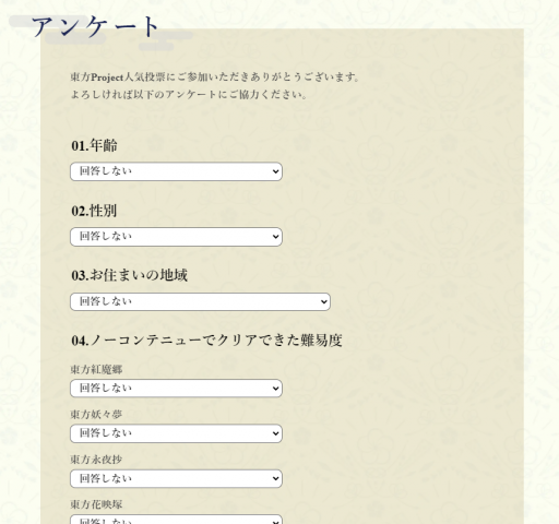 東方人気投票には、投票だけでなく「アンケート」もあります。