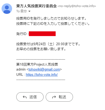 入力したメールアドレスに、今回用の投票用IDが記載されたメールアドレスが届きます。