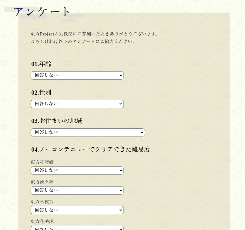 東方人気投票には、投票だけでなく「アンケート」もあります。