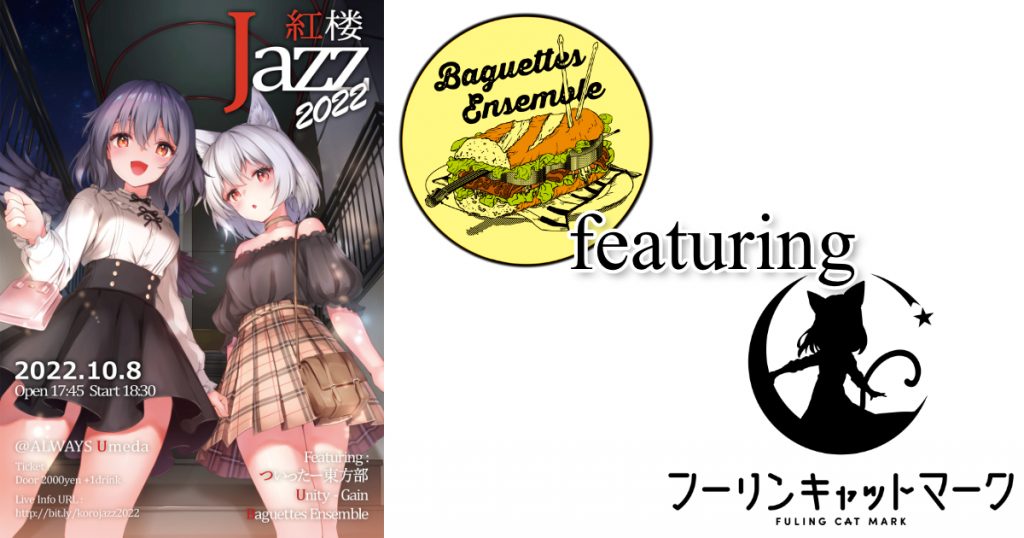 東方紅楼夢(第18回)前日、10月8日夜に大阪で開催される東方JAZZ大型ライブイベント『紅楼JAZZ』2022に、なんと!「この東方アレンジが超すごい!」を受賞した『フーリンキャットマーク』が急遽参戦決定!!