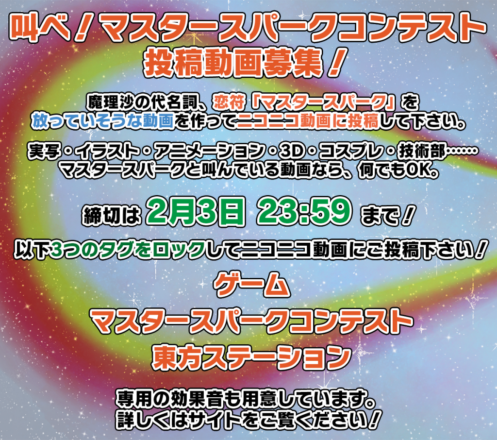 Twitter募集「魔理沙スペルカード人気投票」&ニコニコ動画募集「叫べ!マスタースパークコンテスト」開催中!