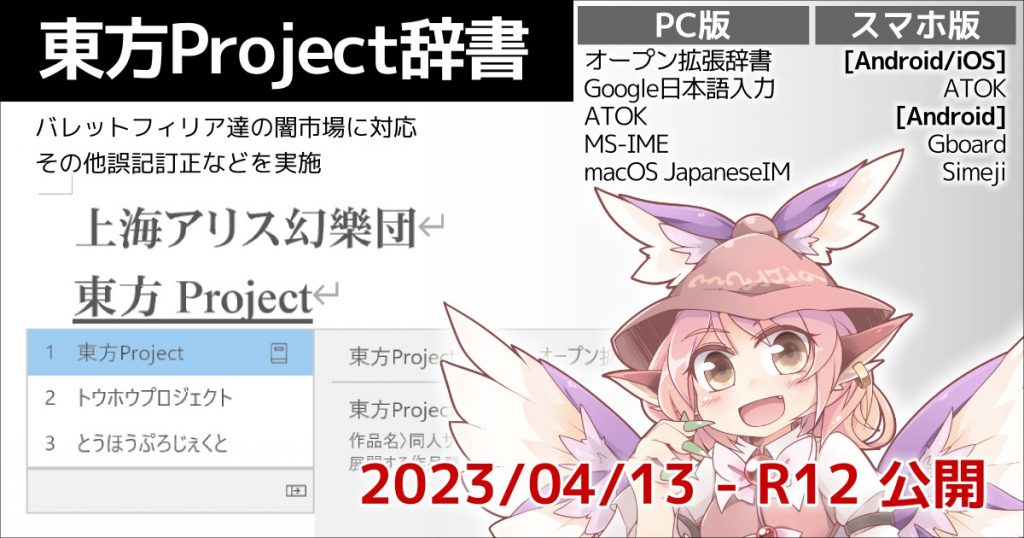 東方Project辞書の最新版となるR12-20230413をリリースしました。