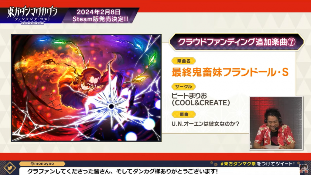 2024年2月8日発売決定!https://t.co/wA2PoUMZqF#東方ダンマク祭#ダンカグ pic.twitter.com/i2QW5DafEi— 東方ダンマクカグラ◆クラファンありがとうございました! (@danmakuJP) August 7, 2023