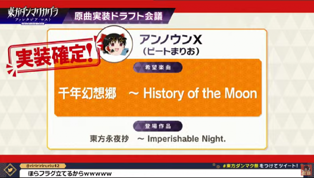 アンノウンX(ビートまりお)さん選択「千年幻想郷 ~ History of the Moon」