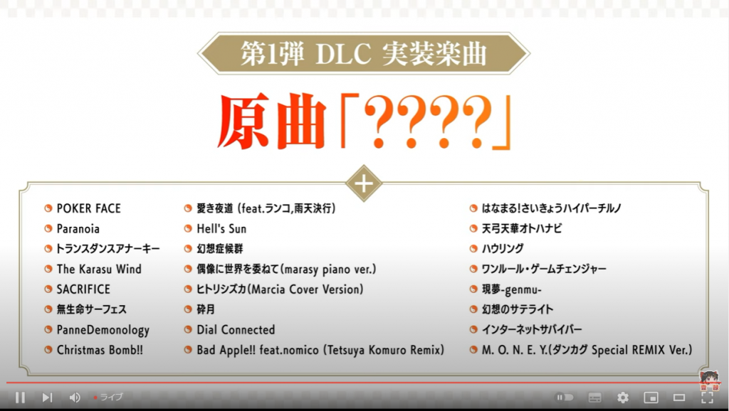 あわせて、DLCパックのリリース時期、収録楽曲内容も公開。現在第4弾までが予定されており、第1弾はゲーム本体の発売と同時にリリースされます。