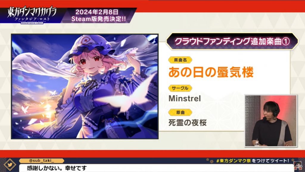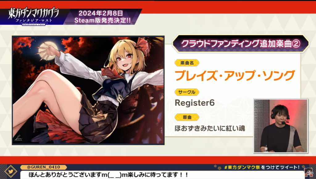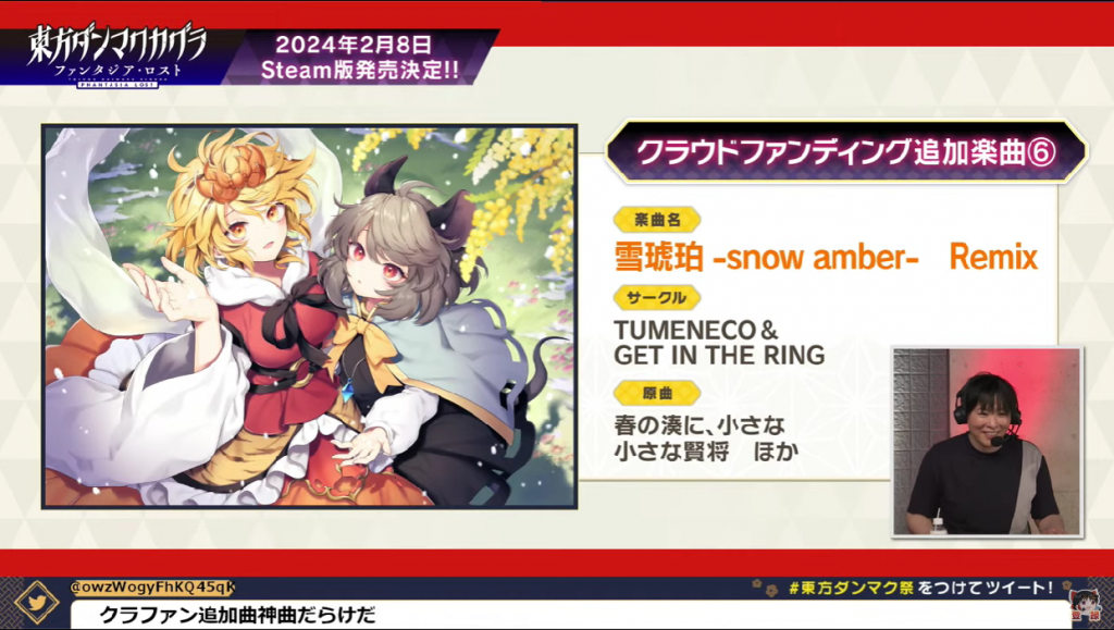 2024年2月8日発売決定!https://t.co/wA2PoUMZqF#東方ダンマク祭#ダンカグ pic.twitter.com/i2QW5DafEi— 東方ダンマクカグラ◆クラファンありがとうございました! (@danmakuJP) August 7, 2023