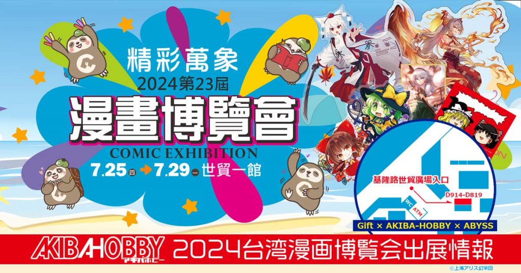 アキバホビーは、2024年7月25日(木) – 2024年7月29日(月)に、台湾・台北世界貿易センター1号館で開催されます「漫画博覧会2024」に出展いたします!