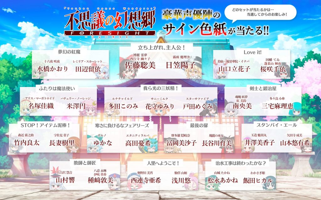 Amazon ギフトカード 5,000 円分&霊夢役の佐藤聡美さんや魔理沙役の日笠陽子さんなど、豪華声優陣サイン色紙複数枚をセットにして、抽選で合計 13 名様にプレゼント!