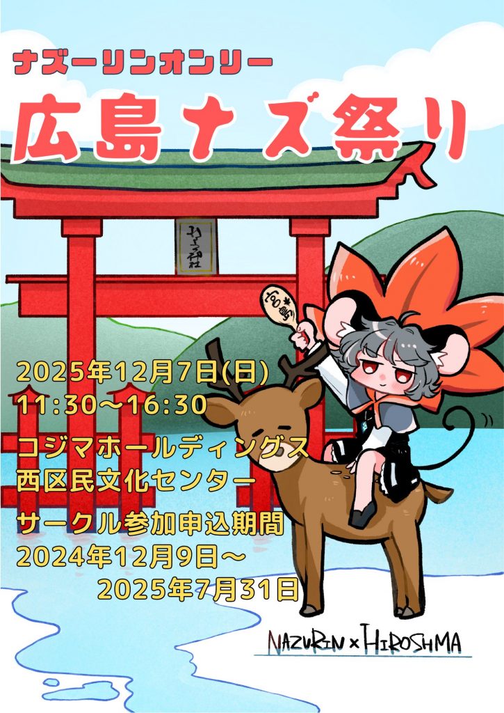 ナズトロ様より、ナズーリンオンリーイベント『広島ナズ祭り』開催のお知らせをいただきました。