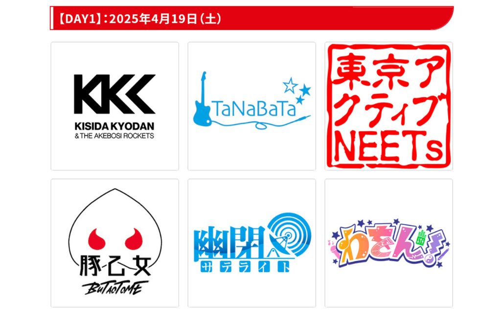 岸田教団&THE明星ロケッツ / TaNaBaTa / 東京アクティブNEETs / 豚乙女 / わをん!