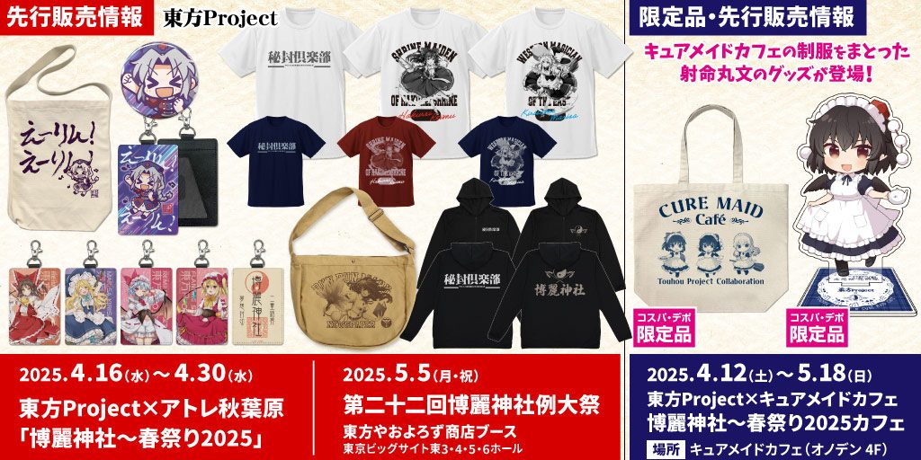 『東方Project』新グッズ続々登場!「博麗神社~春祭り2025」やコラボカフェ先行販売決定!