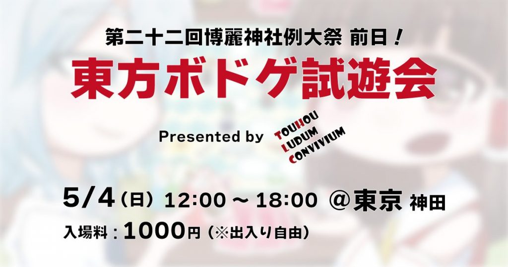 春にもやります!例大祭前日の5/4(日)に「東方ボドゲ試遊会」を神田にて開催!
