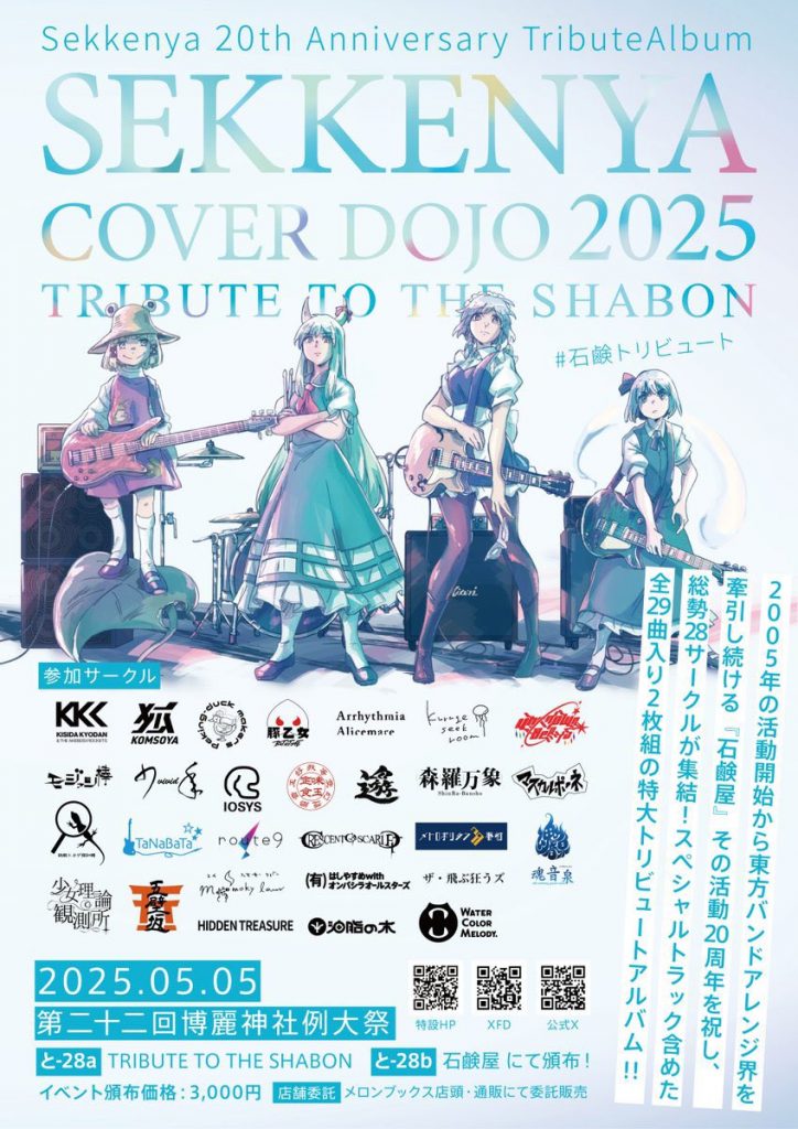 2005年から活動を続ける東方アレンジバンドサークル「石鹸屋」の20周年を記念して、総勢28サークルが集結したトリビュートアルバム『SEKKENYA COVER DOJO 2025 TRIBUTE TO THE SHABON』が登場します。