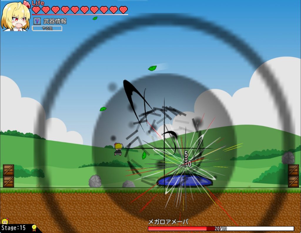 「なげるーみあ!」は東方Projectのキャラクター「ルーミア」が主人公のステージクリア型2Dアクションゲームです。
