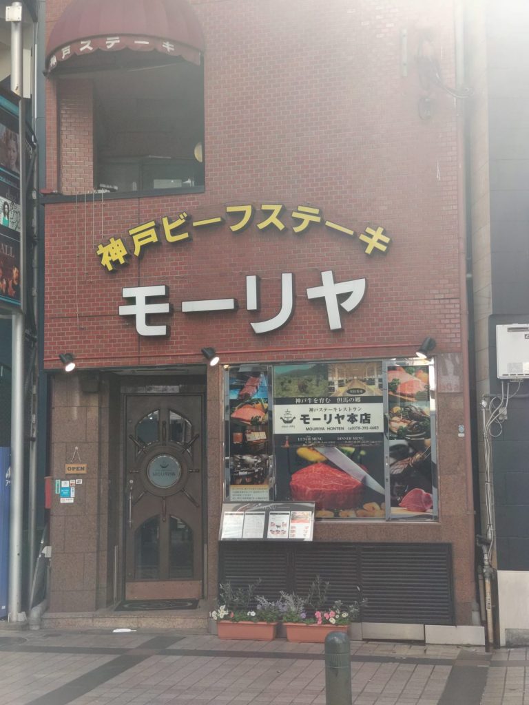 神戸ビーフステーキモーリヤと、長音符で押韻しているのが高ポイント。ディスプレイ写真のお肉もイイ感じ!