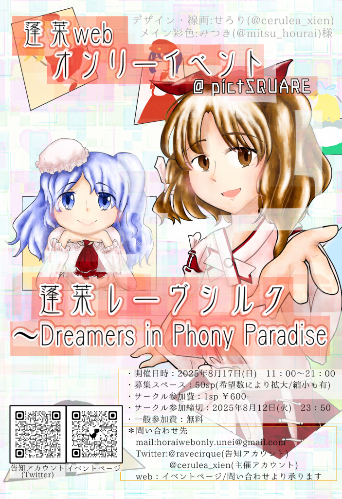 蓬莱人形(CD)、蓬莱少女繪幻想、繪描的幻視板のWebオンリーイベント『蓬莱レーヴシルク〜Dreamers in Phony Paradise』2025年8月17日(日)開催!!