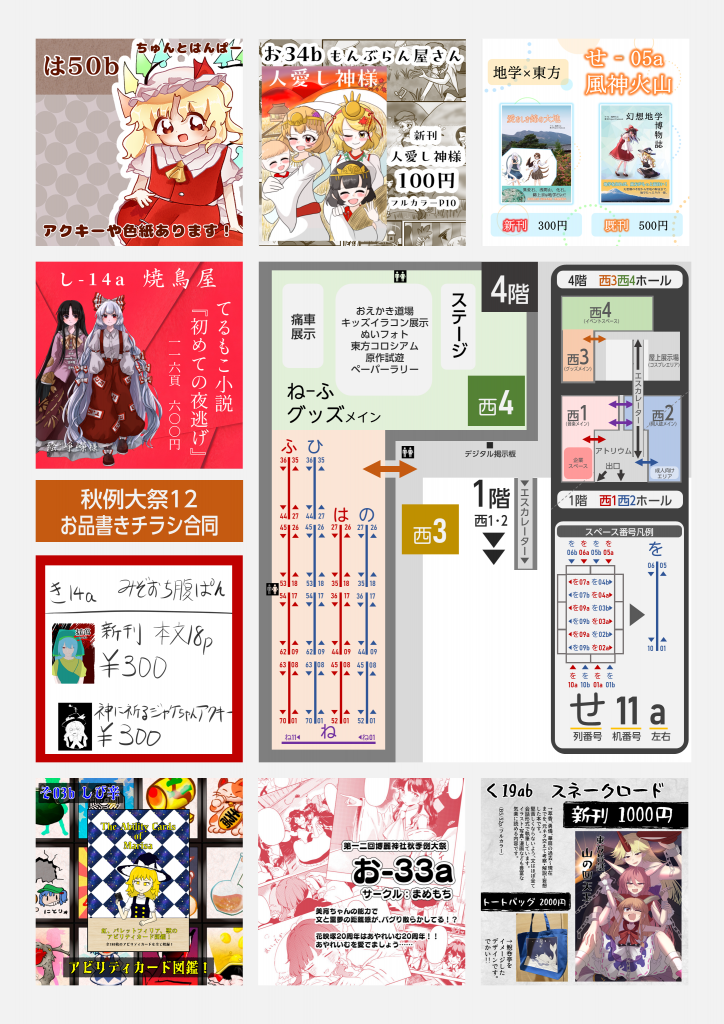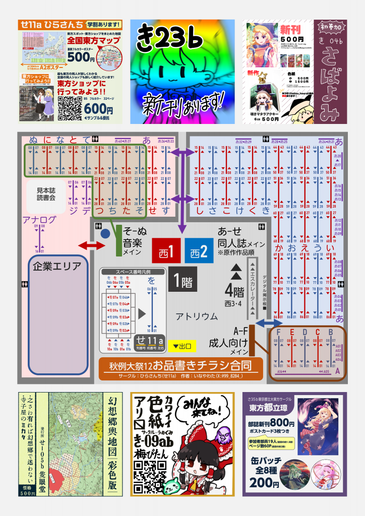 いろんなサークルの告知やおしながきを載せた例大祭マップ「秋例大祭12お品書きチラシ合同」をせ11a「ひらさんち」などで無料配布します!!