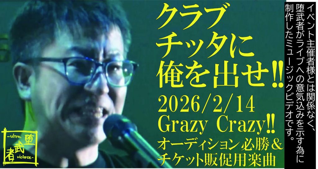 クラブチッタに俺を出せ!! ラスト一枠の出場権を求め2月14日ライブに挑む堕武者グラインドのMV(主催者様とは無関係です)