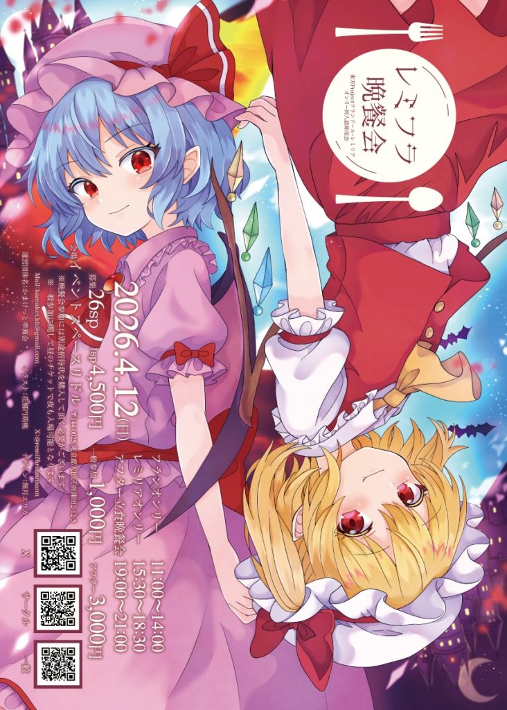 東方Projectフランドール・レミリアオンリー同人誌即売会『レミフラ晩餐会』4月12日開催!