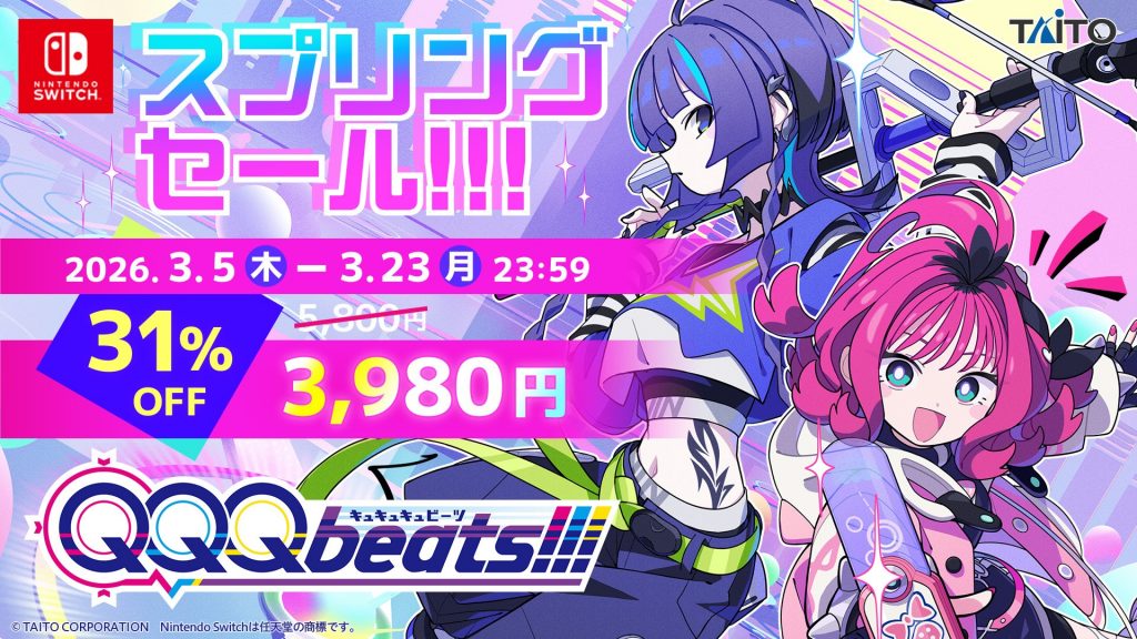 公式 X: https://x.com/qqqbeats【商標】※TAITO および TAITO ロゴは、日本およびその他の国における株式会社タイトーの商標または登録商標です。※Nintendo Switch は任天堂の商標です。※その他、記載されている会社名・商品名は、各社の商標または登録商標です。