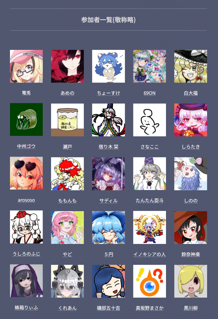 (スマホだと見づらいのでPCかPCモードがお勧めです)◆『東方能力覚醒合同』参加者一覧(敬称略)