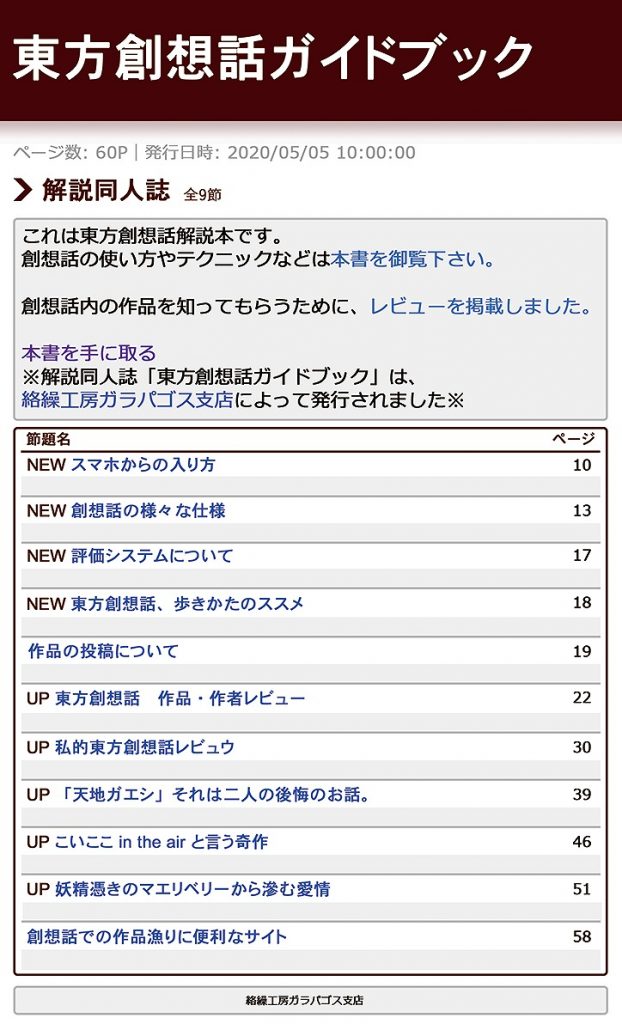 東方創想話ガイドブック(絡繰工房ガラパゴス支店)の通販・購入はメロンブックス https://t.co/RdFc8zhWnz#エアコミケ #サークル #頒布販売