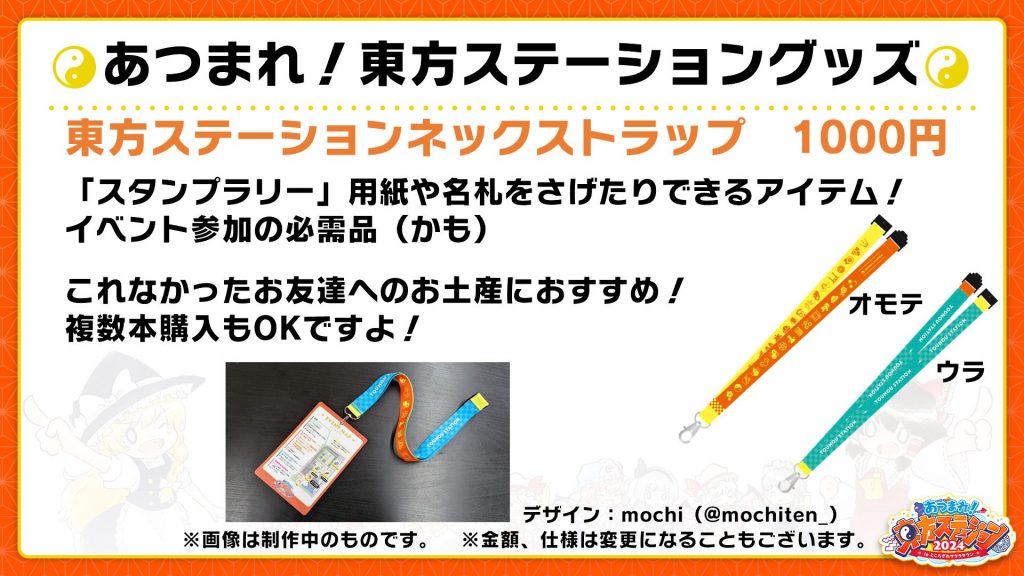 「あつまれ!東方ステーション2024」のグッズはこちらから! スタンプラリー台紙を首からかけられるネックストラップや、昨年大好評だった「缶バッジすくい」も復活!!