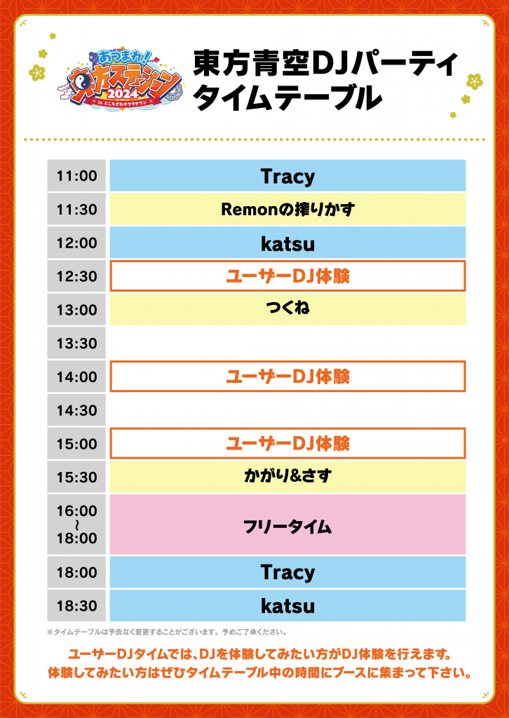 ※タイムテーブルは予告なく変更することがございます。予めご了承ください。