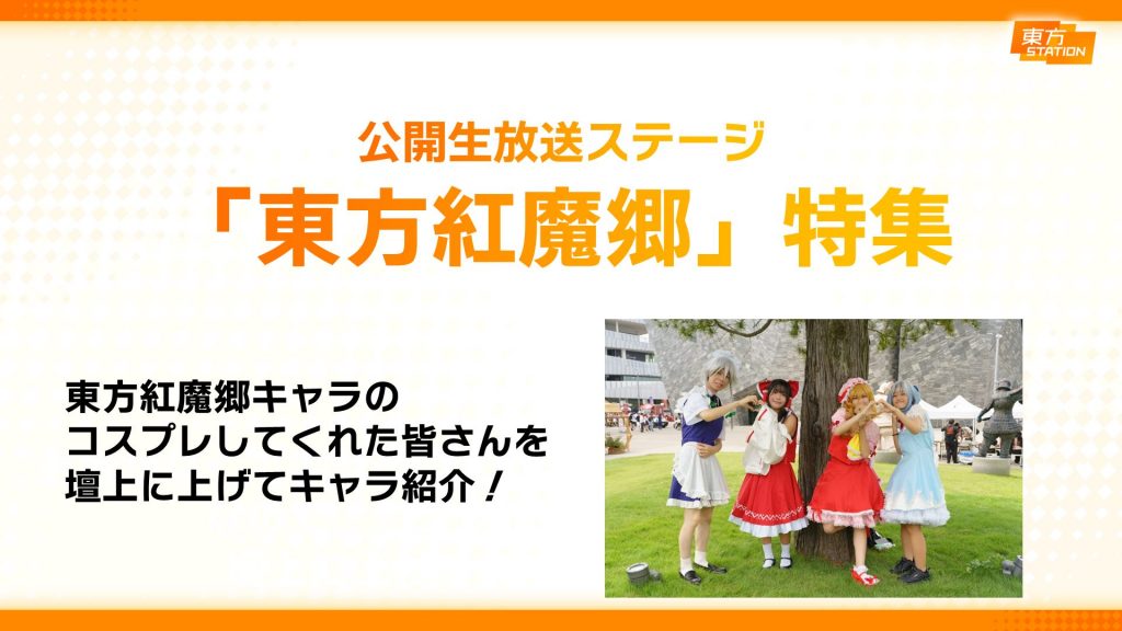 当日、東方紅魔郷のキャラクターのコスプレをして生放送を見に来てくれた方は、ステージ上に上がって写真撮影タイムができるかも? コスプレ参加予定の方はぜひお示し合わせの上お越しください!