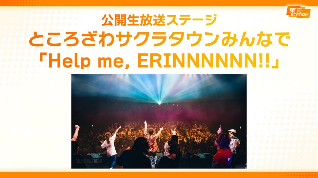 エンディングは毎年恒例、ところざわサクラタウンのみんなで「Help me, ERINNNNNN!!」を歌います! 今年が最後のところざわ、全てを出し切り腕を振りましょう!