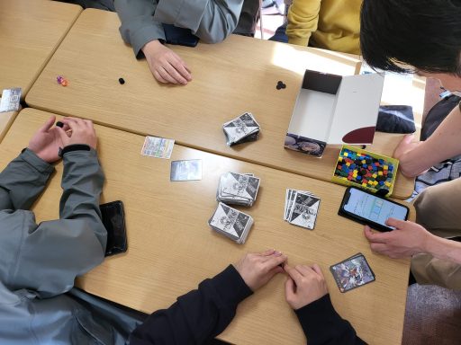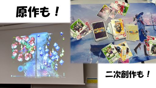 また、月1~2回大学の学生会館などで対面活動を行っています。対面活動ではみんなで花映塚などの対戦ゲームの他、東方に関するボードゲームなどで遊んだりしています。