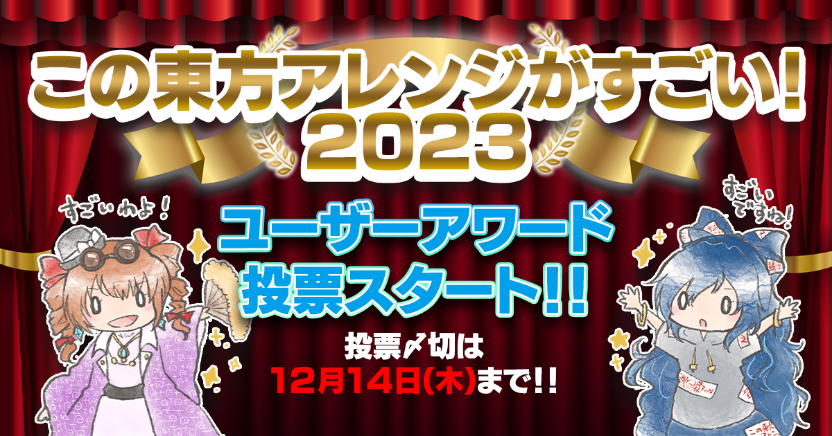 「この東方アレンジがすごい!2023」ユーザーアワードの投票を開始!あなたが今年一番すごいと思った東方アレンジを教えてください