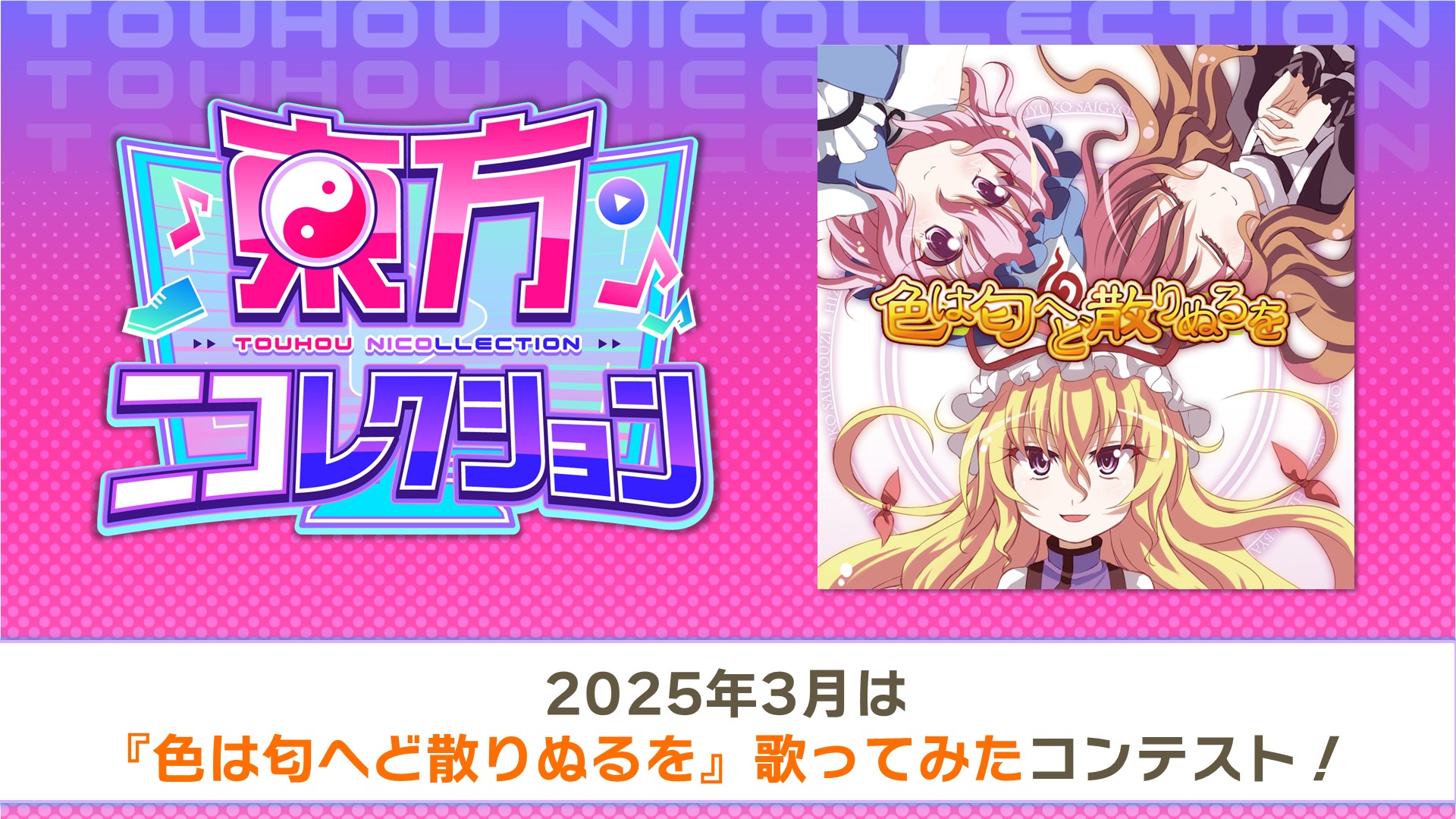 【〆切3月30日(日)23:59まで】東方ニコレクション:2025年3月度開催!テーマは『色は匂へど散りぬるを』歌ってみたコンテスト!!