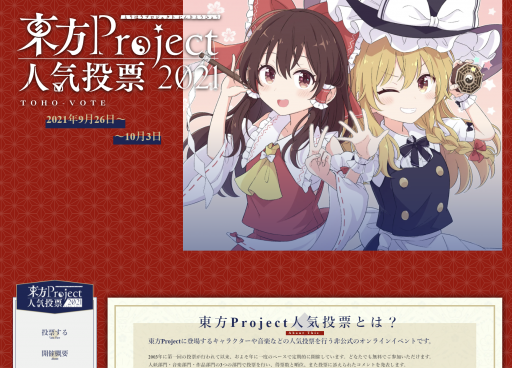 多くの支援作品の登録をお待ちしております。— 東方Project人気投票 (@toho_vote) September 18, 2021