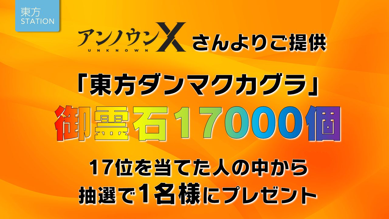 アンノウンX様より『東方ダンマクカグラ』の御霊石を17000個プレゼント!