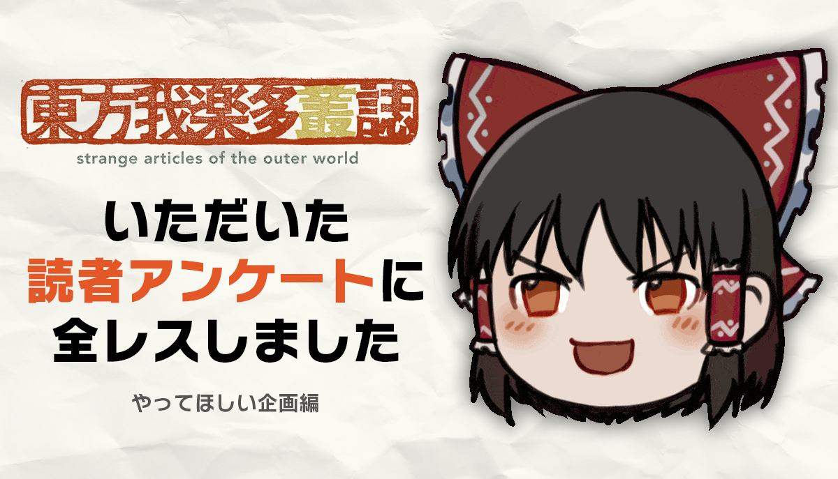 東方我楽多叢誌は東方Projectについて発信するメディアです。