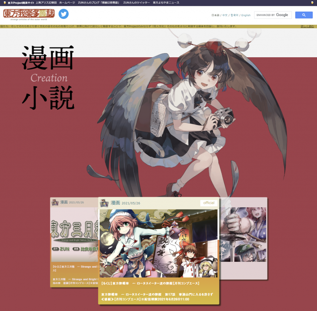 原作者であるZUNさんが生み出した東方Project。その魅力を多くの人へ届けるべく、原作から二次創作まで幅広く発信しています。